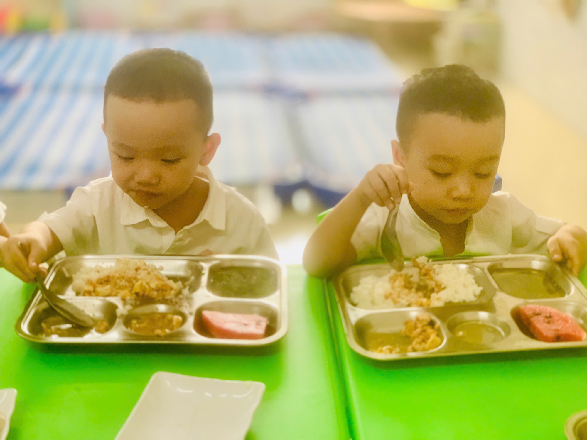 Sau một tuần triển khai, hình thức “khay cơm dinh dưỡng” bước đầu đã mang lại hiệu quả tích cực: trẻ ăn ngon miệng hơn, biết chủ động trong bữa ăn, tỷ lệ ăn hết suất tăng lên rõ rệt. Giáo viên và nhân viên bếp dễ dàng theo dõi khẩu phần của từng trẻ, đảm bảo cân đối dinh dưỡng và kiểm soát vệ sinh an toàn thực phẩm tốt hơn.